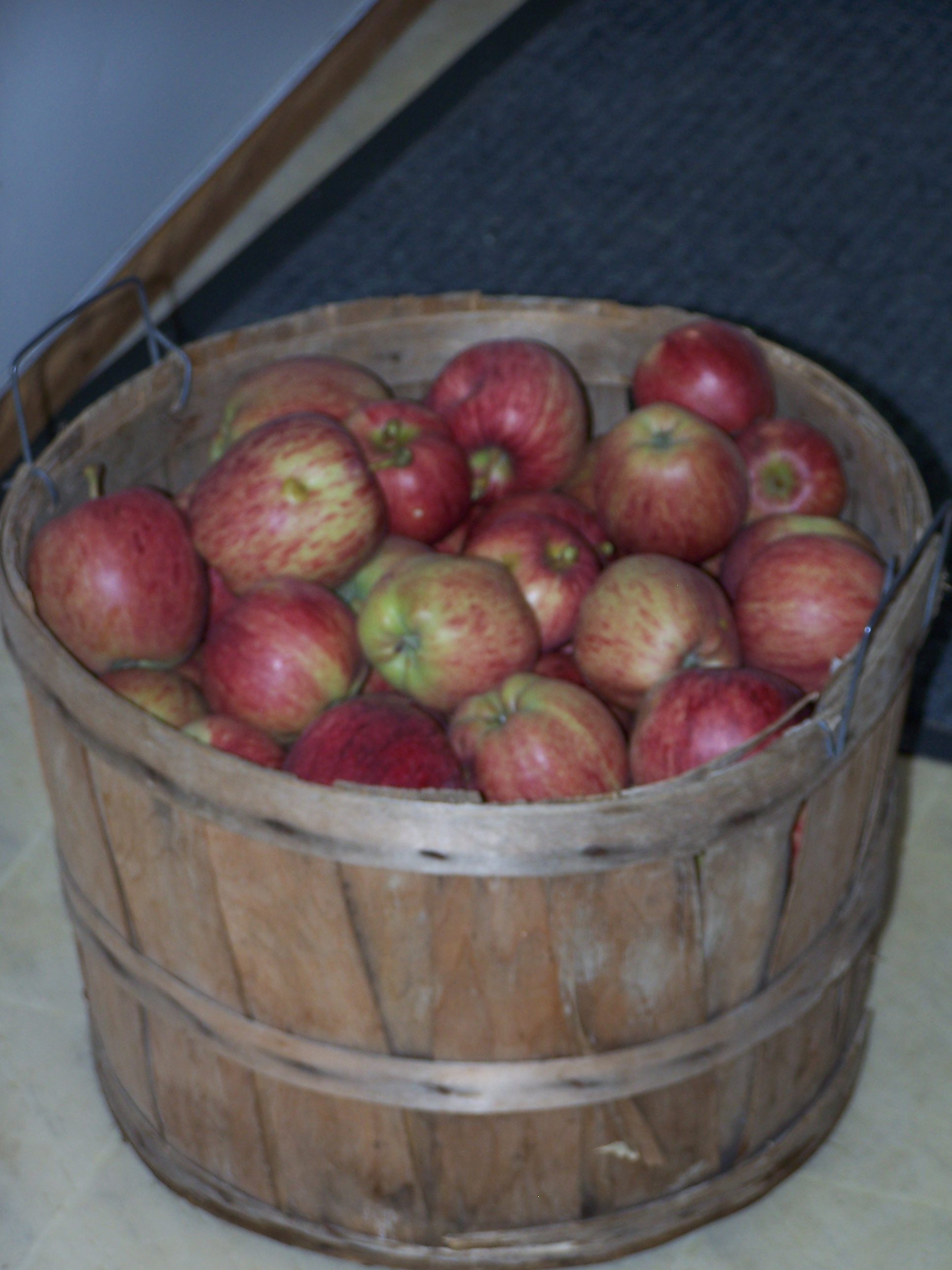 Although many recipes call for added sugar, you do not need to include it to make applesauce. I prefer to can it without additional spices and add them to taste when serving. I was introduced to this method years ago when living in Indiana by an elderly lady with numerous apple trees adorning her own back yard. A full, heaping bushel off apples will yield @ 22 quart jars of sauce. My little half bushel basket, filled as pictured, will yield one canner full, or 7 quart jars.